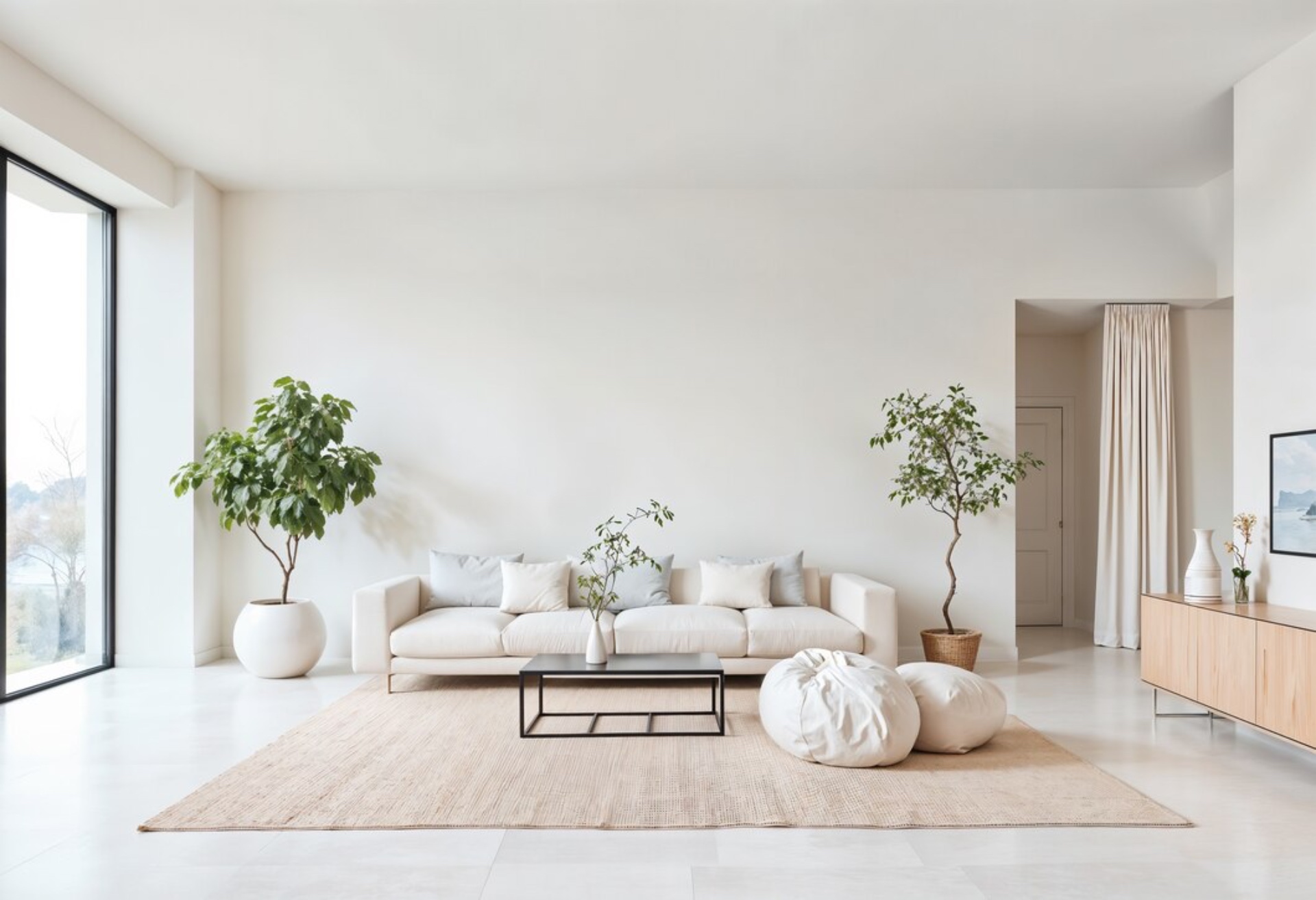 Cloud Dancer doskonale sprawdza się jako tło dla nowoczesnych aranżacji wnętrz i baza kolorystyczna dla stylów takich jak minimalizm, soft modern czy quiet luxury.