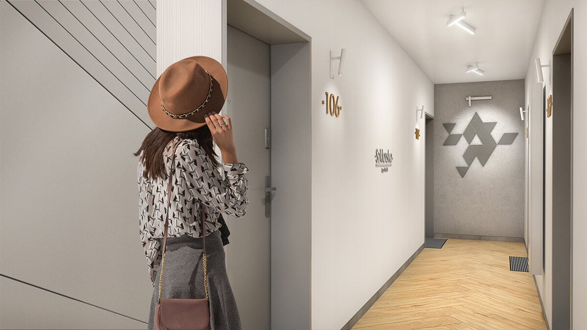 Projekt wnętrz łączy w sobie inspiracje naturalnymi materiałami wystepującymi w otaczających hotel górskich sceneriach z nowoczesnymi i prostymi formami. Całość utrzymana jest w ciepłej kolorystyce, zestawionej z szorstkimi i surowymi powierzchniami betonowymi.