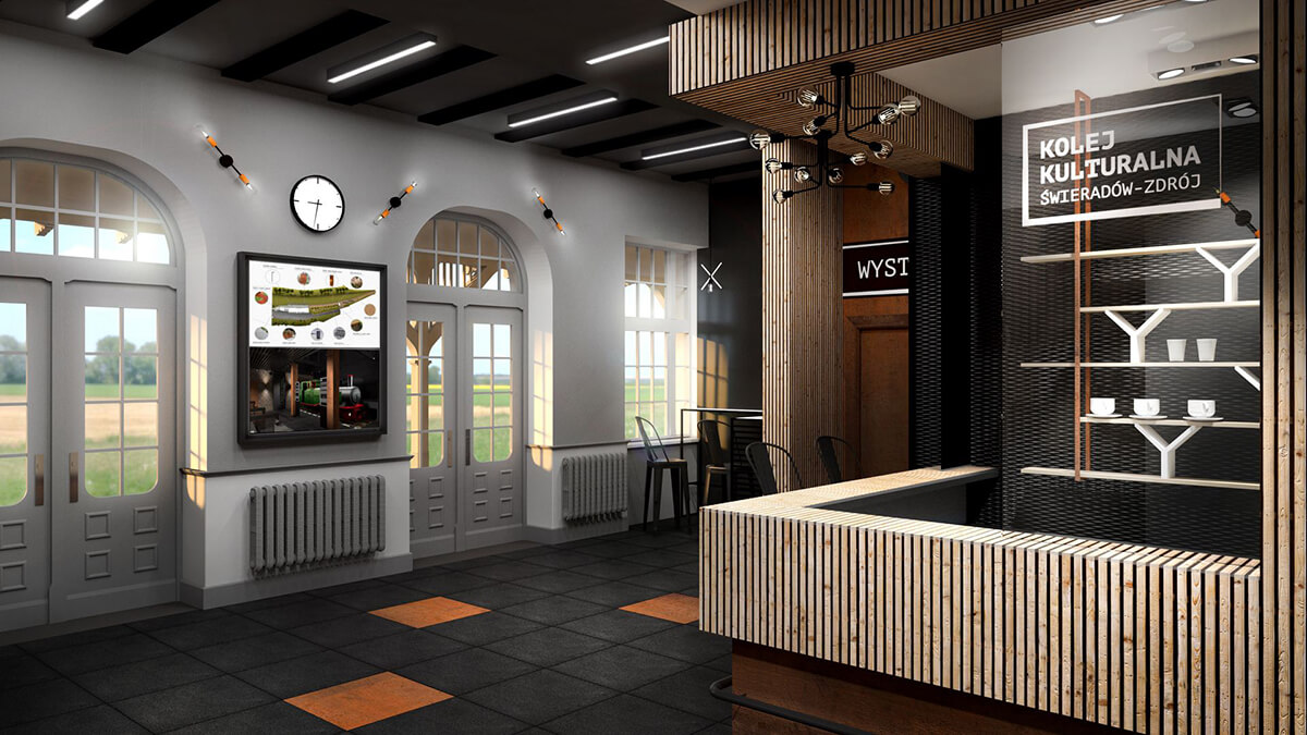 Budynki stacyjne zapewniają również przestrzeń umożliwiającą zakup biletów na przejazd turystyczna koleją, czy mały punkt gastronomiczny. Wnętrza wyposażone są w pełni funkcjonalne sanitariaty oraz atrakcyjny wizualnie łącznik pomiędzy budynkiem dawnej maszynowni a częścią wielofunkcyjną.
