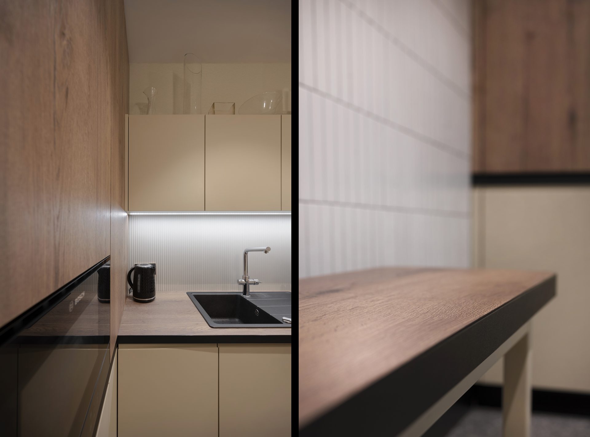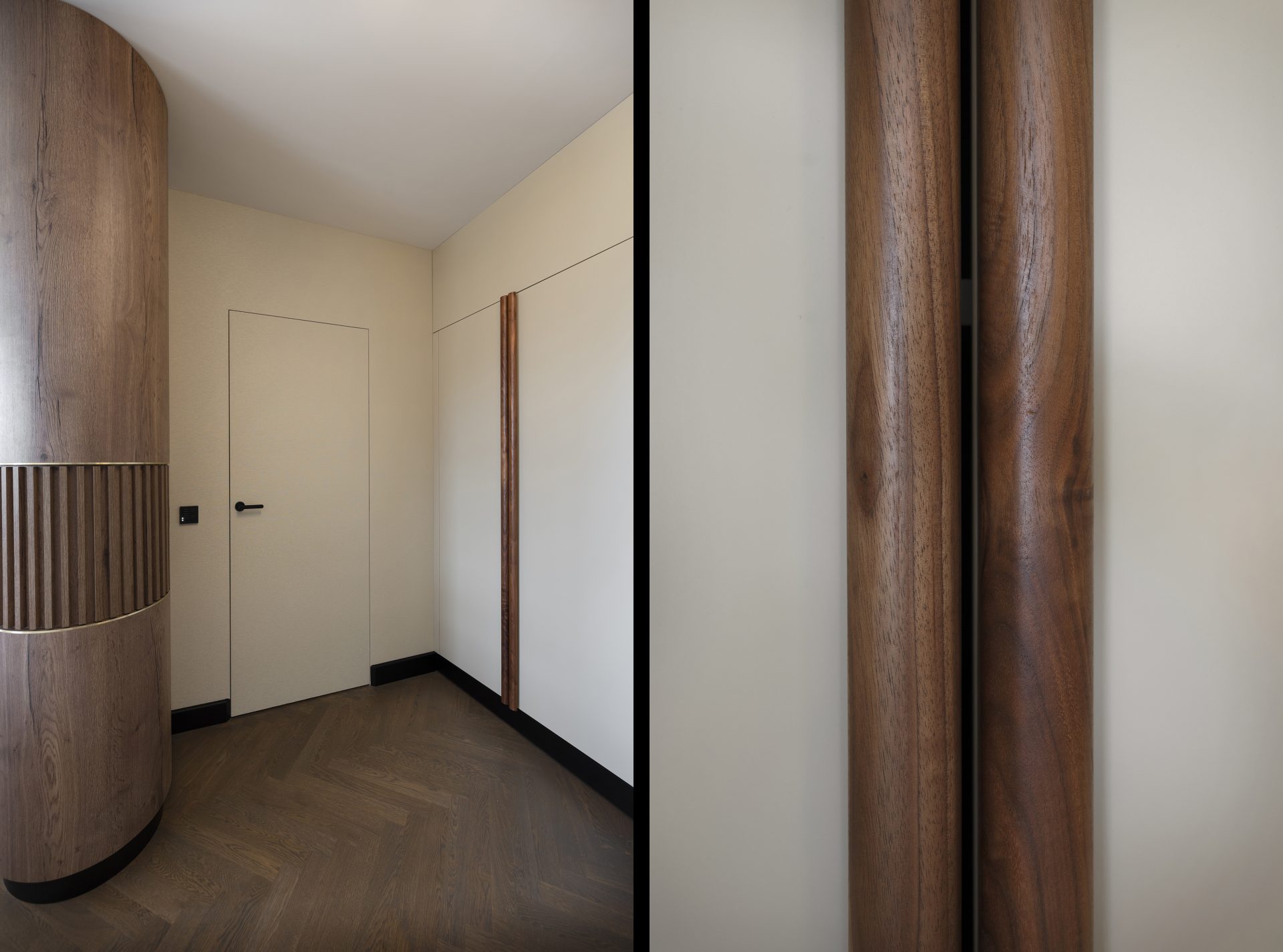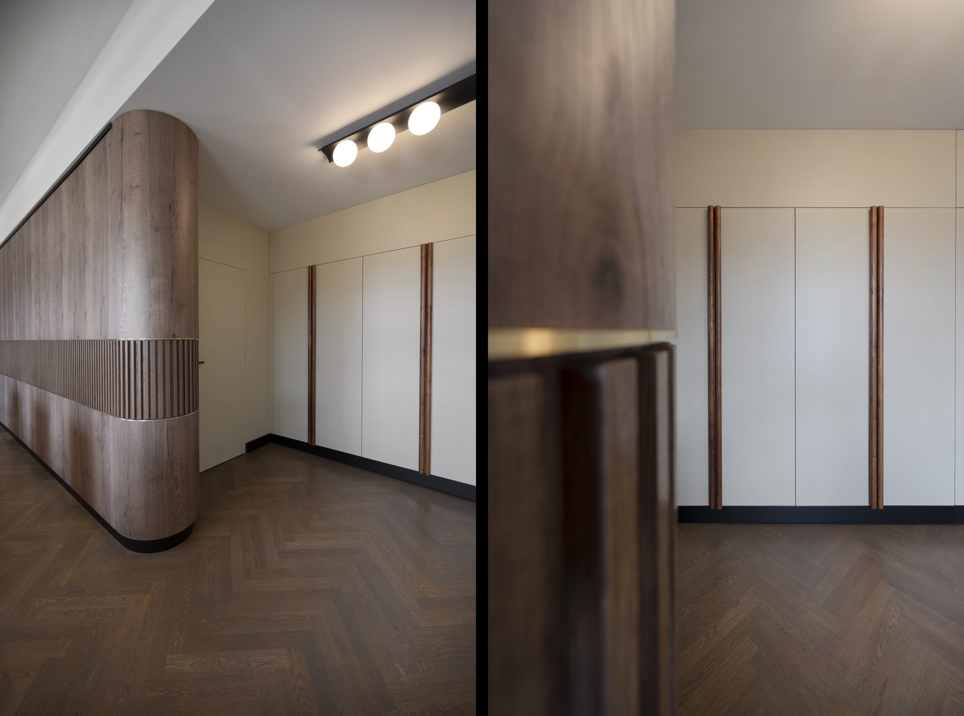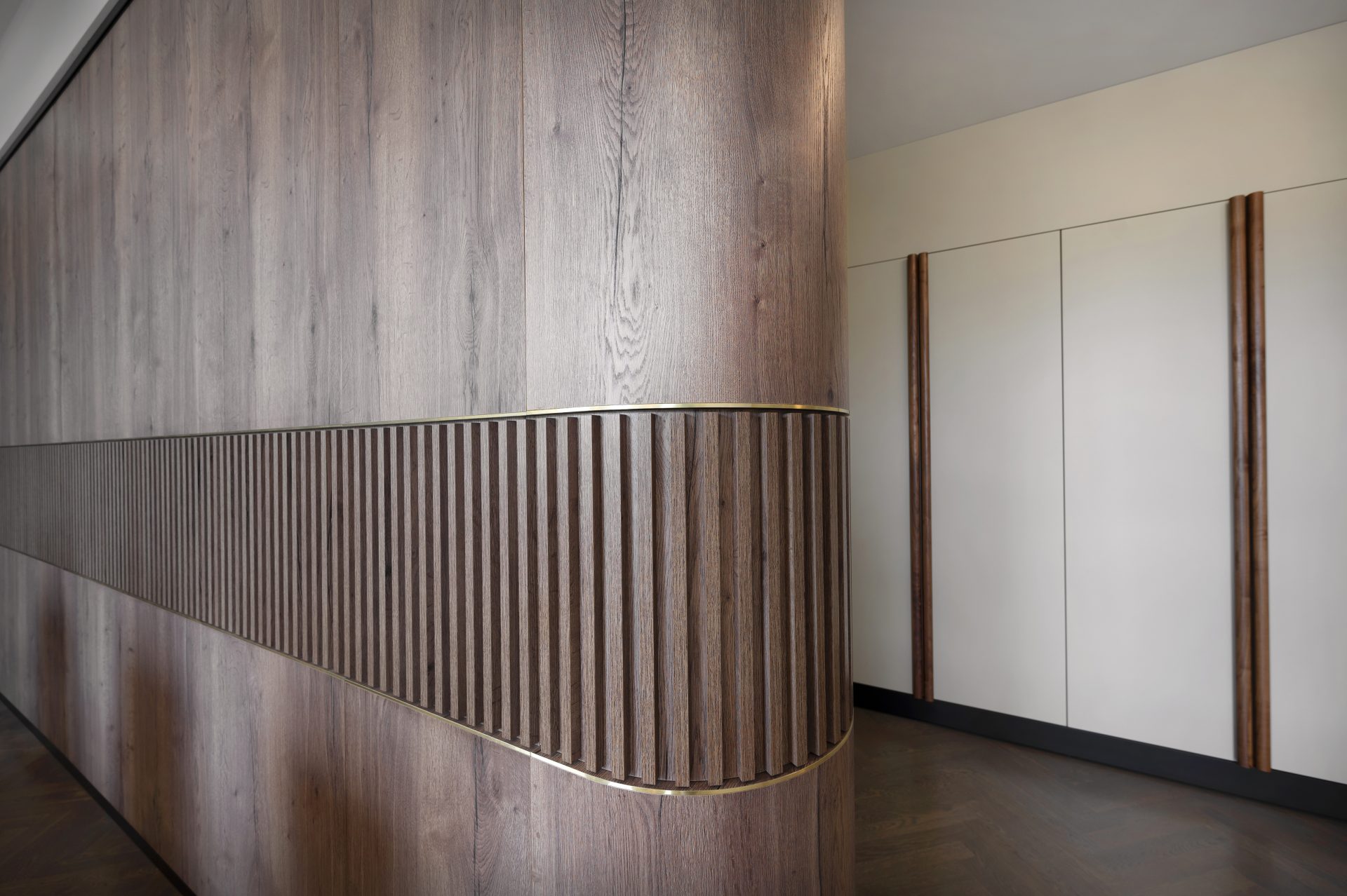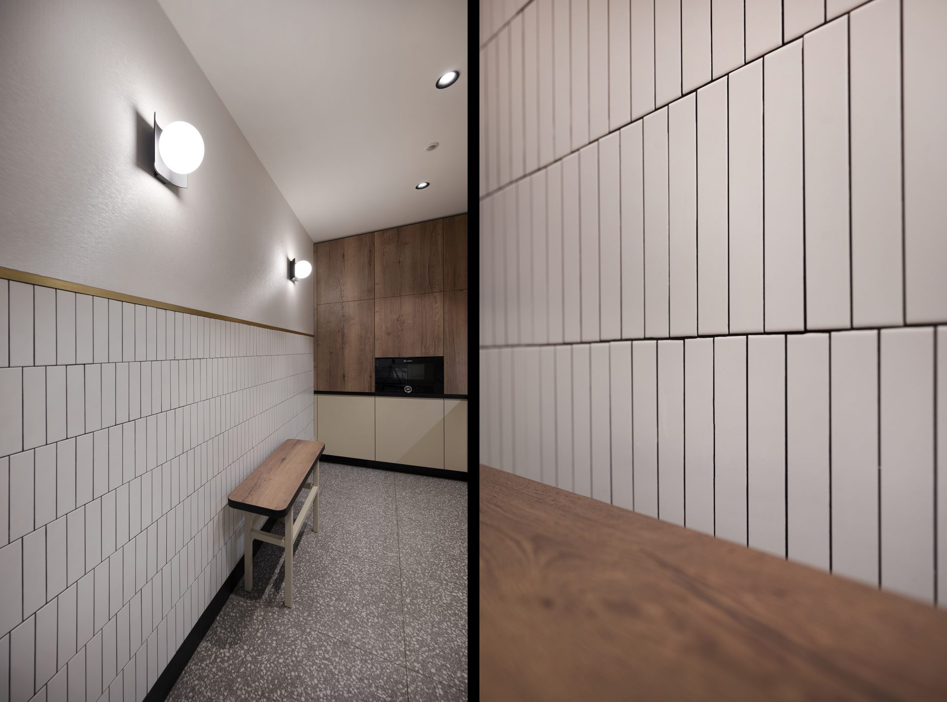 Podobnie jak w przypadku wielu przedwojennych realizacjach, tutaj również upatrywaliśmy wysokich walorów estetycznych w surowym rysunku usłojenia naturalnych fornirów drewnianych. Duży nacisk położony został także na detale mebli o miękkich elementach, tak bliskich gdyńskiej modernistycznej naturze. Całość utrzymana jest w ciepłej gamie kolorystycznej i skontrastowana czernią. Wnętrze wyposażone zostało w kompletny zestaw multimedialnych udogodnień, zapewnionych przez najwyższej klasy osprzęt do pracy konferencyjnej, tak istotnej przy powszechnej dziś zdalnej komunikacji.
