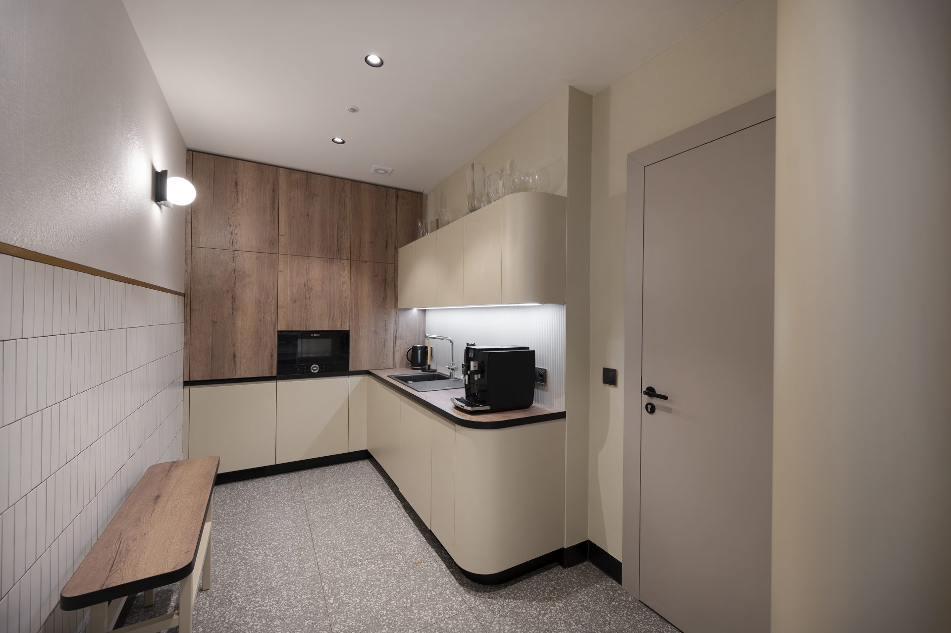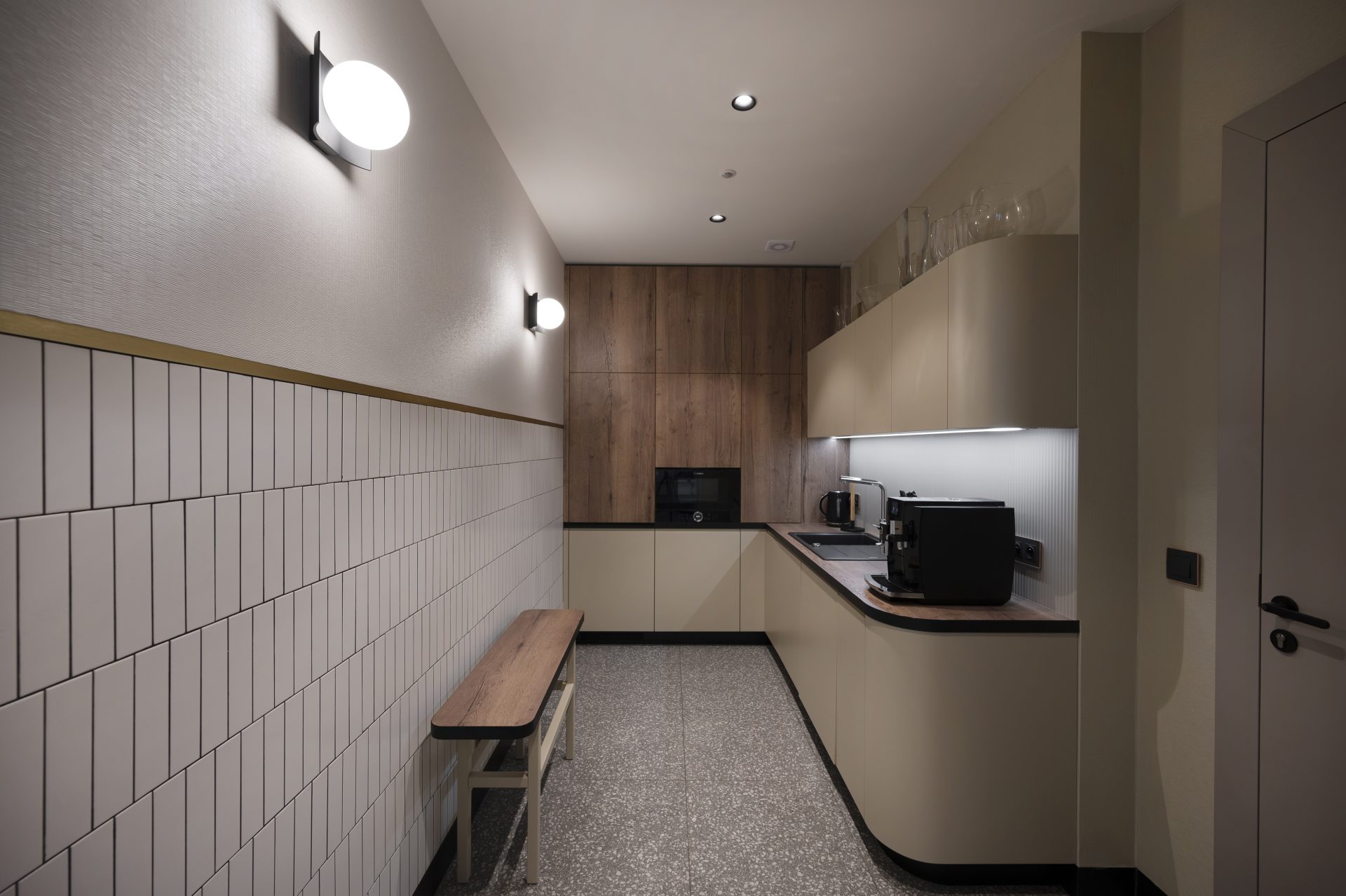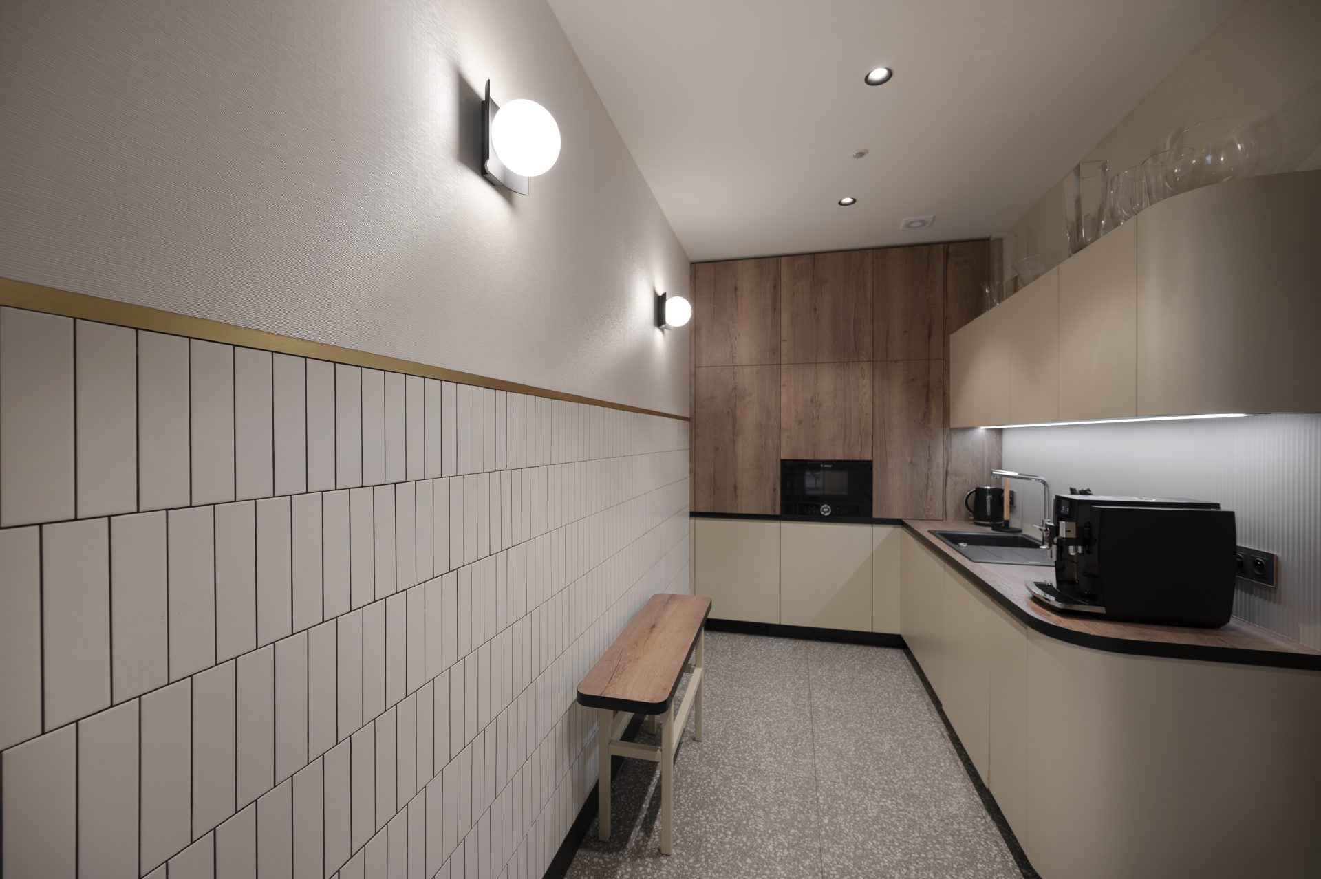 Koncepcja wnętrza sali obrad prezydenckich wraz z kuchnią zakładała stworzenie stonowanej przestrzeni silnie zanurzonej w wyrazistej dla Gdyni modernistycznej historii jej architektury. Zarówno sam budynek, w którym mieści się historyczna „Sala Sokoła” jak i jego lokalizacja w sercu Śródmieścia, narzuciły ogromną odpowiedzialność projektową. Wszystkie zatem decyzje architektoniczne zostały wnikliwie przeanalizowane, aby uzyskać ponadczasowy efekt elegancji, wyrafinowania, ale i prostoty, których wartość leży w wysokiej jakości materiałach i ich scharmonizowanych zestawieniach kompozycyjnych.