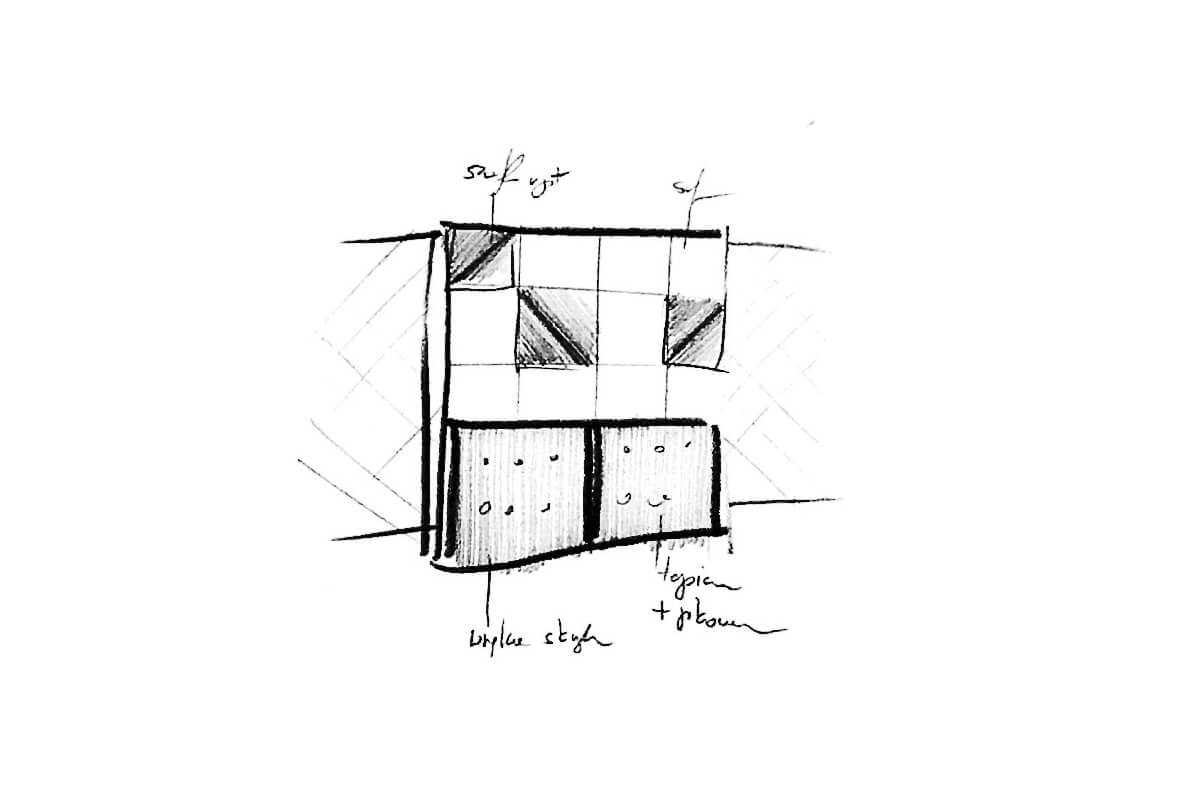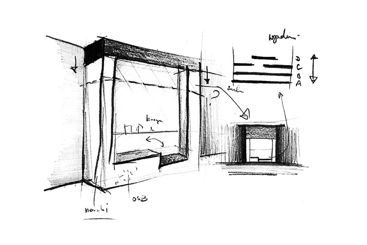 Projekt zakładał stworzenie wnętrz o wyrazistym charakterze, dzięki zastosowaniu wielokrotnie lakierowanej industrialnej w wyrazie płyty OSB, jako głównego materiału wykończeniowego w elementach stolarskich oraz mocno zawężonej gamie kolorystycznej.