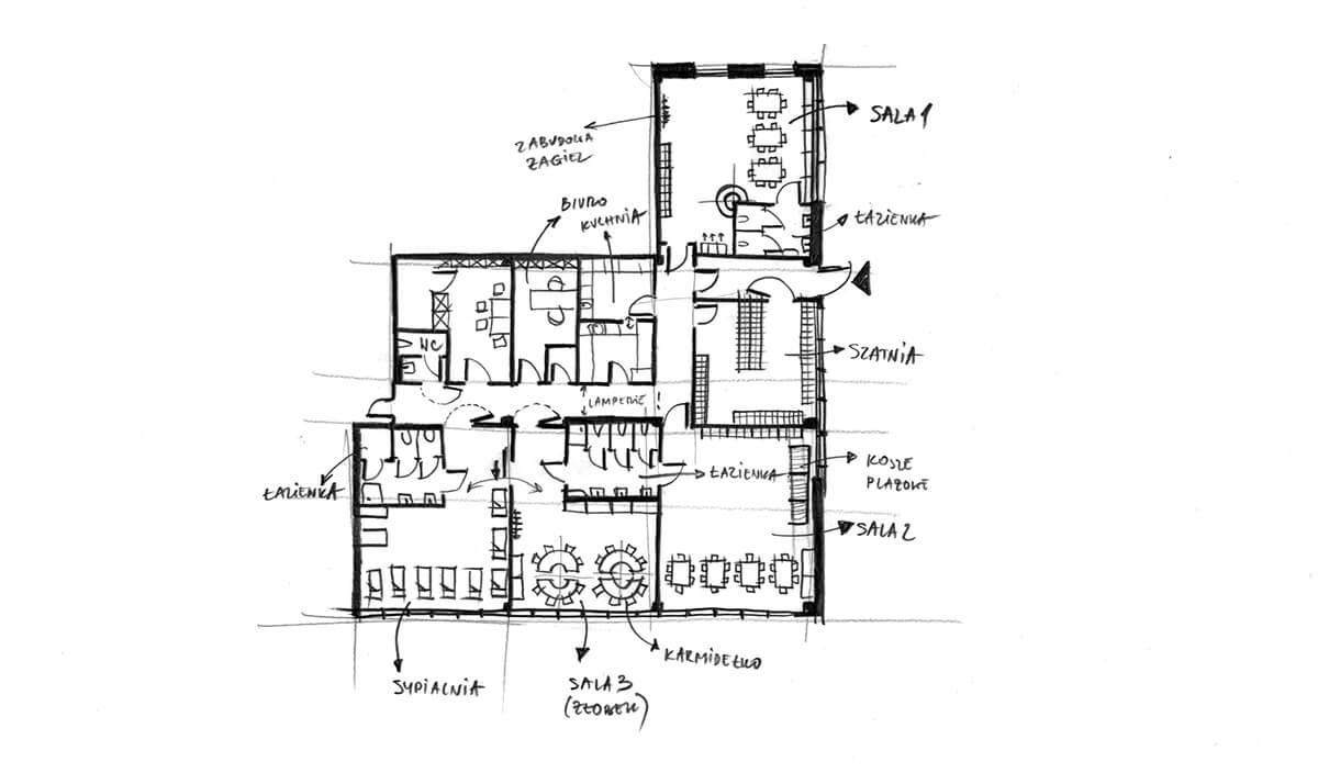 Istotnym założeniem było stworzenie funkcjonalnej przestrzeni, odpornej na zużycie, z dużą możliwością kreacji i swobodnych modyfikacji w trakcie jej użytkowania.